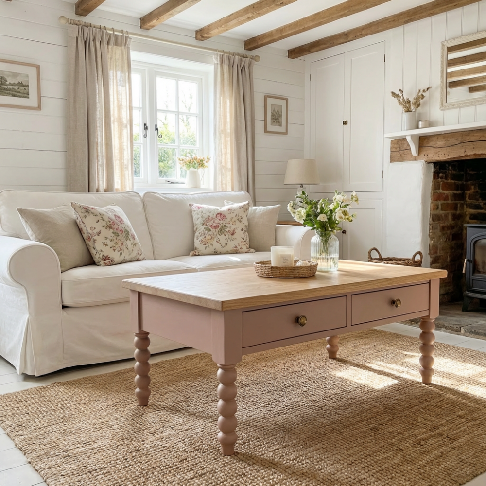 Wprowadź do swojego wnętrza powiew świeżości i oryginalności dzięki stolikowi kawowemu NO.60. Ten wyjątkowy mebel łączy w sobie solidność naturalnego dębu z niezwykle modnym, a zarazem subtelnym wybarwieniem w kolorze zgaszonego różu. To idealna propozycja dla miłośników stylu cottagecore, prowansalskiego czy modern farmhouse, którzy poszukują mebli z duszą, potrafiących zdefiniować charakter całego salonu.