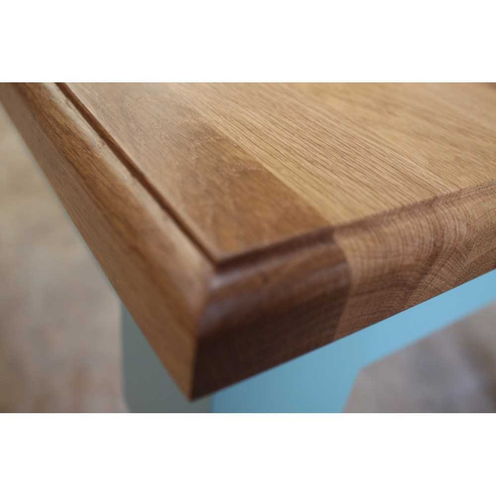 Stół Sevilla w kolorze mięty idealnie sprawdzi do nietuzinkowych aranżacji. Blat wykonany z litego drewna dębowego, sprawia że stół będzie wytrzymały i może posłużyć przez wiele lat. Ciekawe wybarwienie nóg i krosen sprawia, że model Sevilla z dębowym blatem będzie prawdziwą perełką kącika jadalnego.