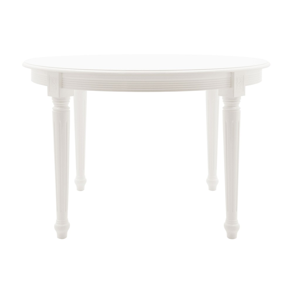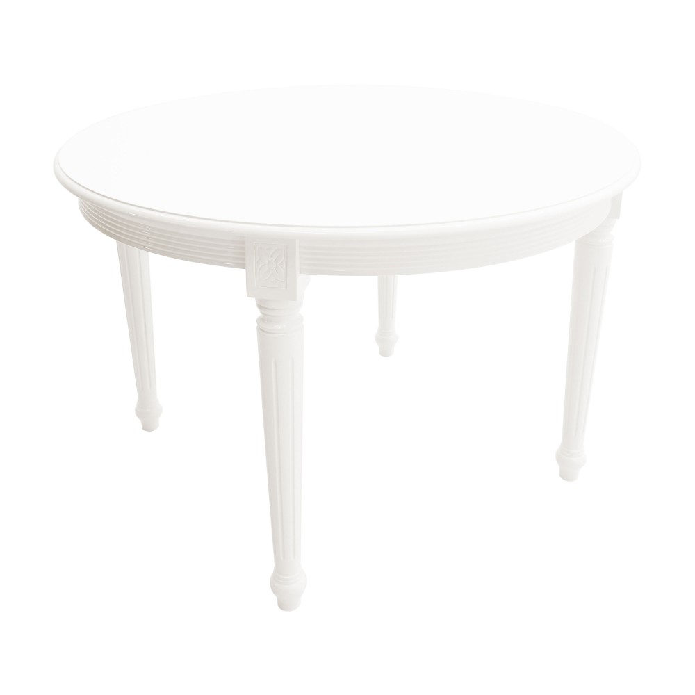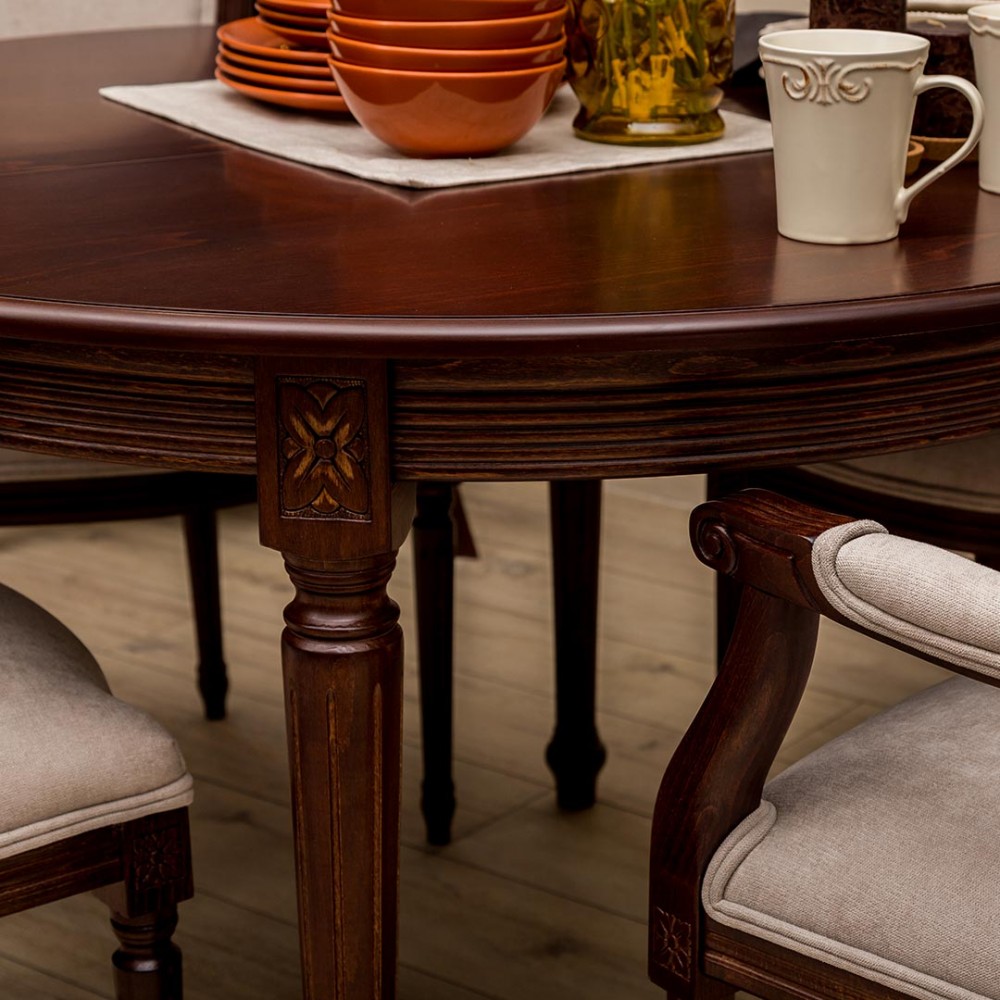 Piękny, klasyczny model stołu z okrągłym blatem. Najlepiej prezentuje się z krzesłami z tej samej kolekcji Luigi, tapicerowanych, lub z rattanowym oparciem.