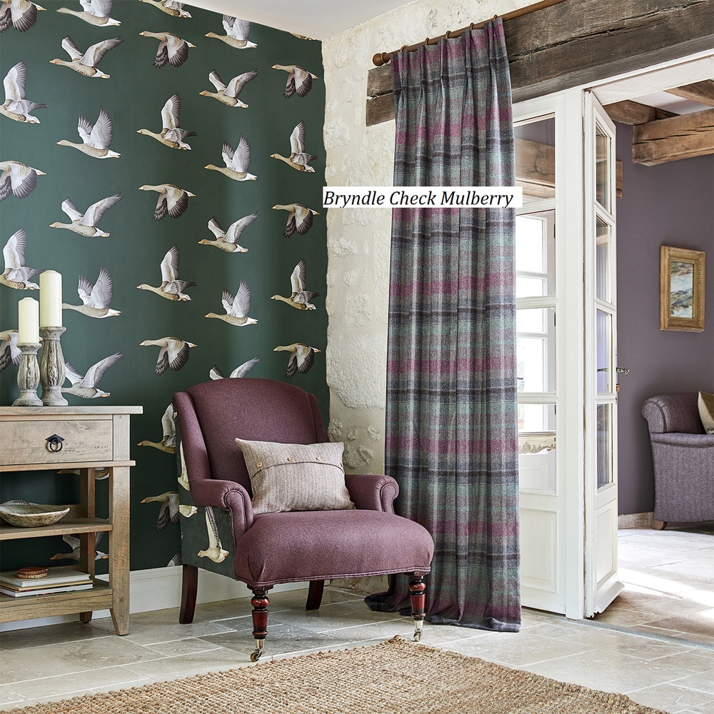 Klasyczna brytyjska tkanina w kratę z dużą ilością wełny, sprawdzi w aranżacjach w stylu retro i cottage. Idealna na zasłony, obicia i dekoracje.