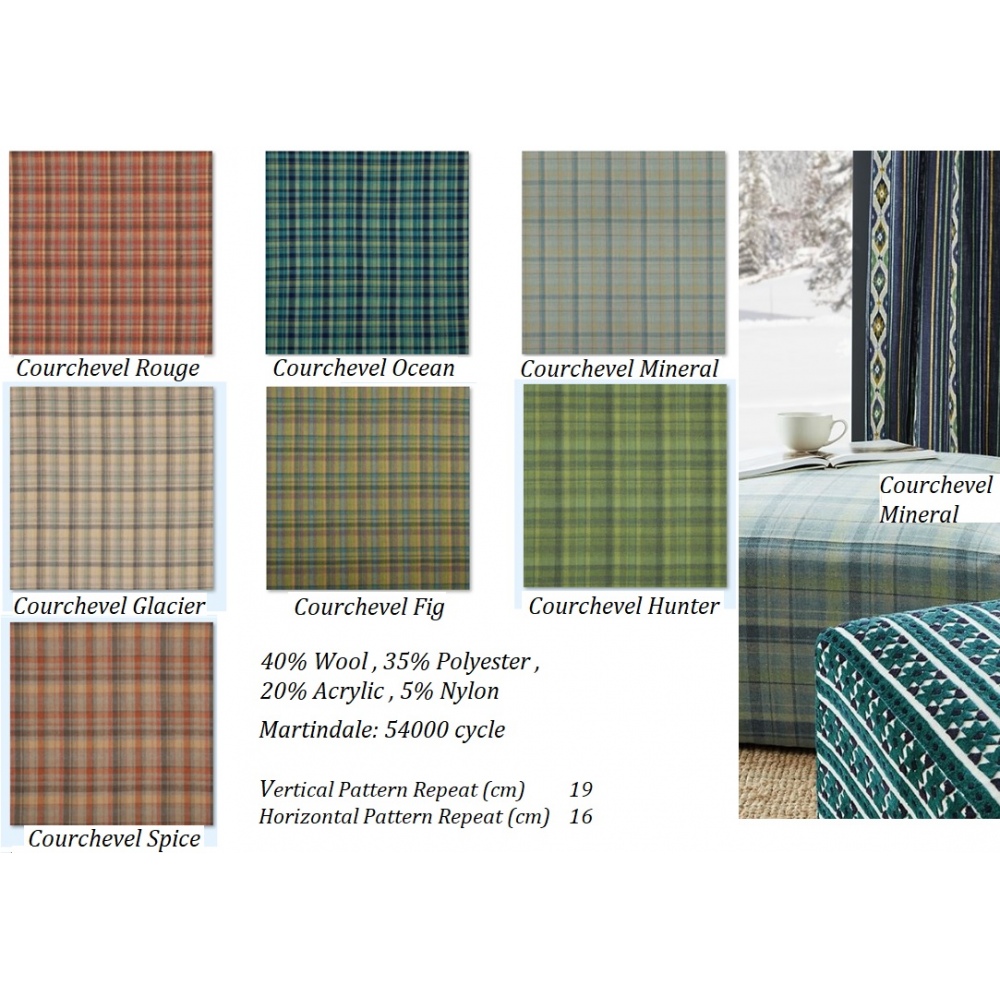 Klasyczna brytyjska tkanina w kratę z dużą ilością wełny, sprawdzi w aranżacjach w stylu retro i cottage. Idealna na zasłony, obicia i dekoracje.