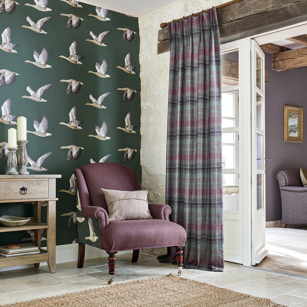 Klasyczna brytyjska tkanina w kratę z dużą ilością wełny, sprawdzi w aranżacjach w stylu retro i cottage. Idealna na zasłony, obicia i dekoracje.