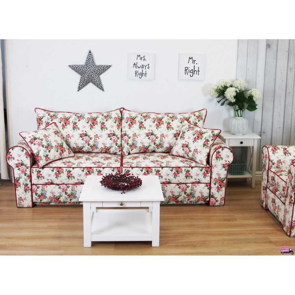 Polecamy piękną angielską sofę Rosaly 226 w róże, która rozkłada się jak klasyczna wersalka. Sofa posiada powierzchnię do spania 140x180 cm i zapewni wygodny wypoczynek dla dwojga gości. Romantyczny pokrowiec w kwiaty spodoba się miłośnikom stylu angielskiego we wnętrzach. Warto podkreślić, że sofa Rosaly 226 posiada możliwość całkowitego zdjęcia pokrowca, który łatwo upierzemy w pralce i zachowamy piękny wygląd sofy na długie lata. Klasyczna wersalka Rosaly lubi towarzystwo romantycznych i klasycznych dodatków. Wygodne poduszkowe oparcie oraz miękkie siedziska to gwarancja komfortu na najwyższym poziomie.