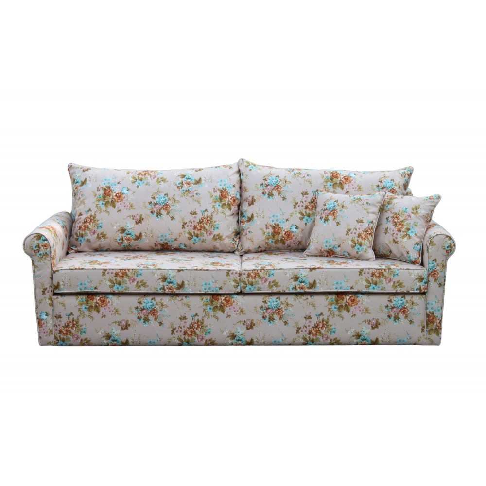 Sofa z funkcją spania Rosaly 230 to propozycja dla osób, które szukają niebanalnych mebli do urządzenia swojego salonu, a jednocześnie sofy, która zapewni im wygodę i dodatkowe miejsce do spania. Kwiatowa sofa Rosaly 230 o szerokości całkowitej 230 cm to trzyosobowa sofa klasyczna oferująca duże, wygodne siedzisko na sprężynach wypełnione pianką, prostokątne poduchowe oparcia wypełnione silikonem i pianką oraz szerokie podłokietniki zapewniające komfortowe oparcie.